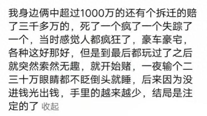 今天的话题:穷人有钱的经历是什么?接下来,编辑器将带您了解网民对此问题的看法。当时我的叔叔是他的老人很舒服。他是承包商,别墅和游泳池,买了许多房屋。当时许多人向他发誓,每个人都嫉妒他。后来,他不知道自己是官僚还是其他东西,但突然他没有钱,他的房子和汽车都被封锁了。他仍然是一个无聊的人,他把儿子拖入了水中。现在他去了另一个建筑工地工作并偿还债务。男孩讨厌她,没有亲吻她。简而言之,这有点有趣。我姨妈的家人在省会购买了三所房屋,我的家乡有两所房子,还有七个楼层的房屋本身是享受的。这对老夫妇,两个堂兄和朋友,总共有五辆车,包括宝马X5,雷克萨斯,宝马系列和两辆马自达。然后我的堂兄在网上赌他卖了全部,仍然欠更多n 600万。这里的一些拆除家庭从未发生过 - 它从未发生过 - 人们主动采取了创造机会结交朋友,结交朋友并建立良好关系的倡议。这是为了欺骗家庭拆除赌博,以支付几年来他们支付的所有现金和房地产。真实的故事:我的前同事是一名小学老师,并在学校捐款时,他在彩票中赢得了500万元。其余的是购买商店,租房并生活在自我的生活中(当时很便宜)。现在的婚姻(脚堂)都是员工老师,他们在周末,冬季度假和标签上教兴趣课。不好生活。我的叔叔是,当他和妻子在一起时,他们每天都在战斗。有时,他们甚至用刀割断了背部。这个家庭不利。离婚后,我的叔叔迅速在建设项目上赚了很多钱。后来,他遇到了一个大博S现在他从事与军事有关的行业工作。州长,一个私人商人...遇到了他...在阅读了网民的这些美丽股票之后,手机屏幕前有很多单词吗?欢迎每个人在评论区域留言。